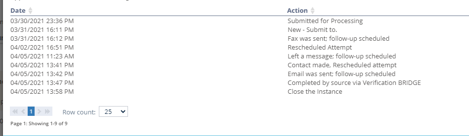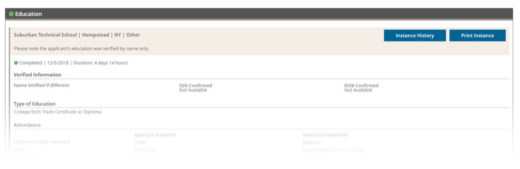 There are many different types of Actions that can be applied to a Verification as we’re completing a background. For more specifics on Actions you may see, visit Action History.
